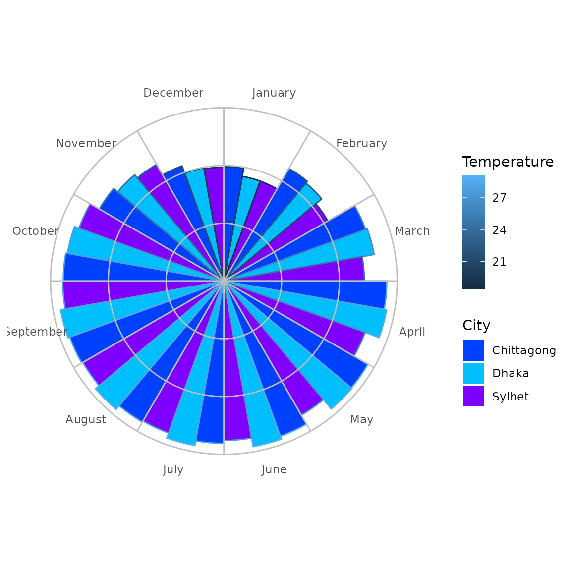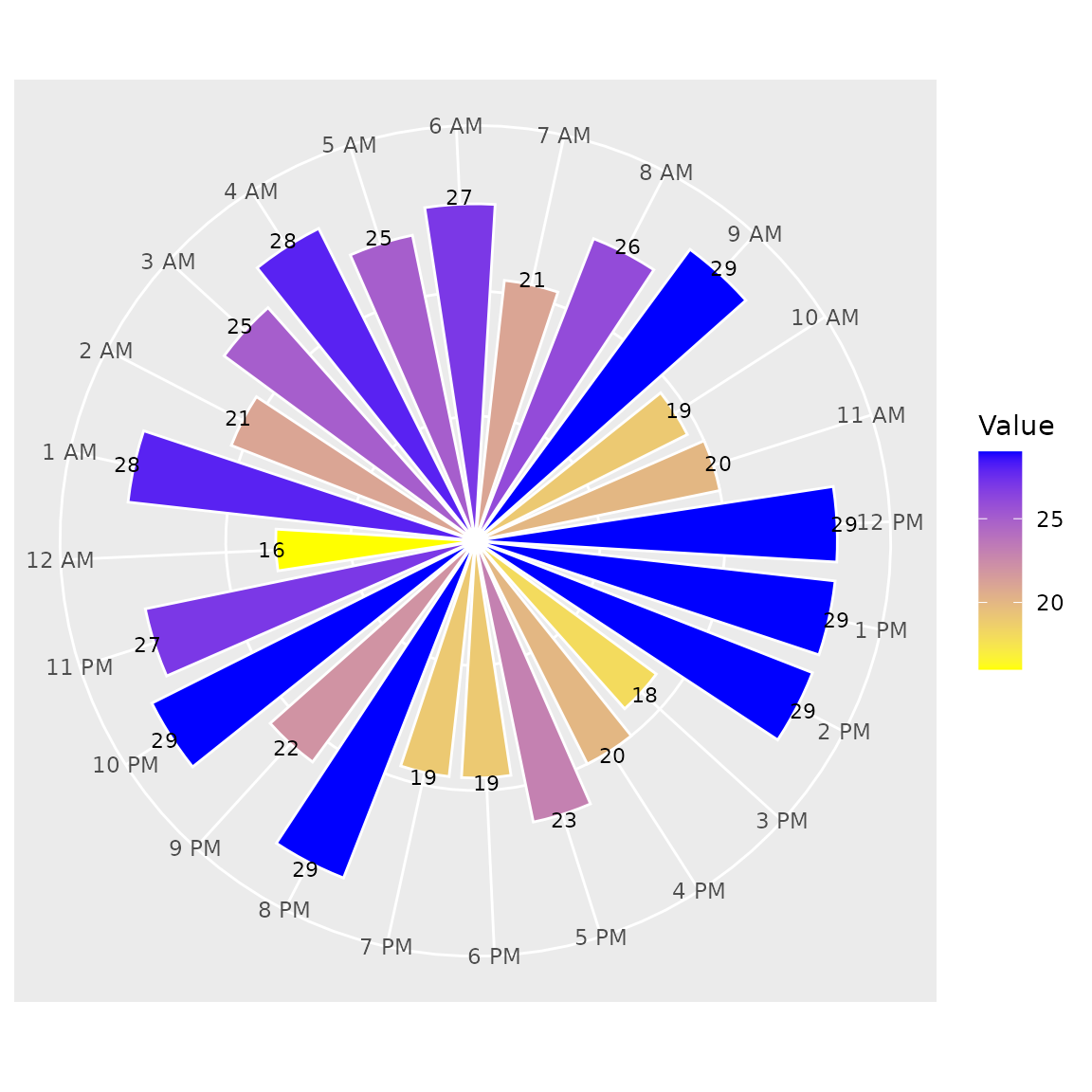 clock_chart_qnt(acdt, time = Time, len = Humidity..., Col = Temperature.F.) +